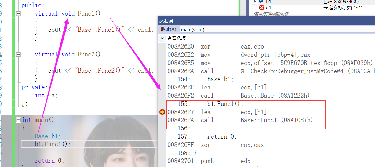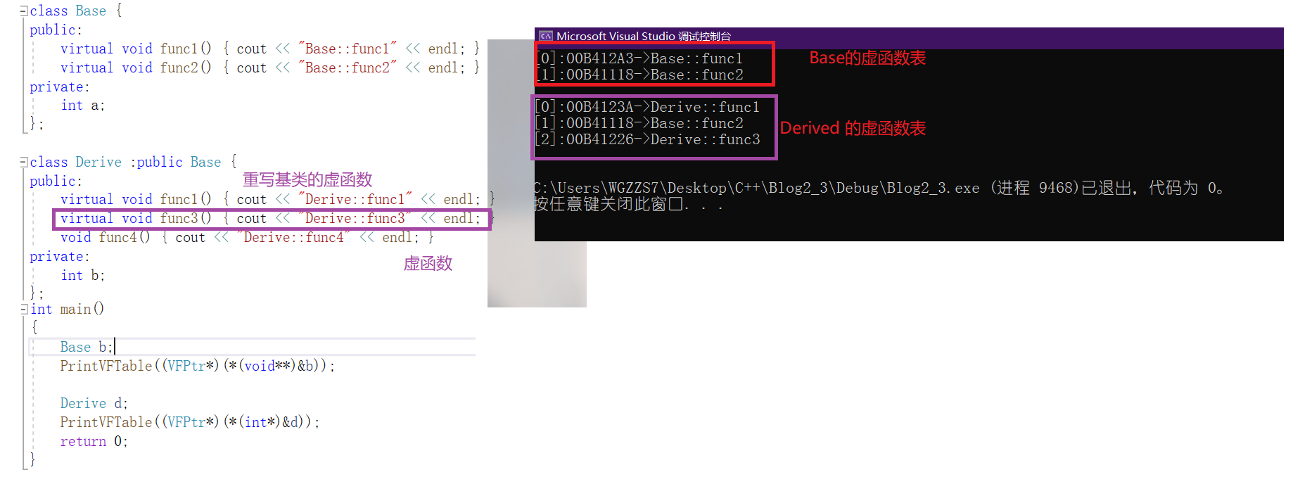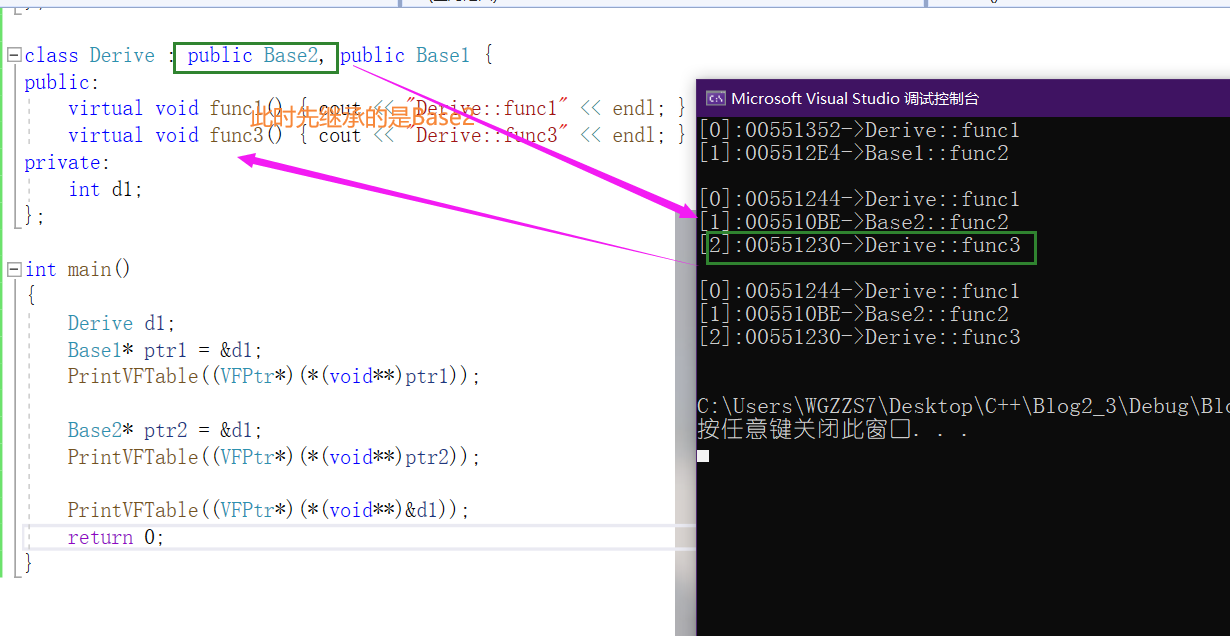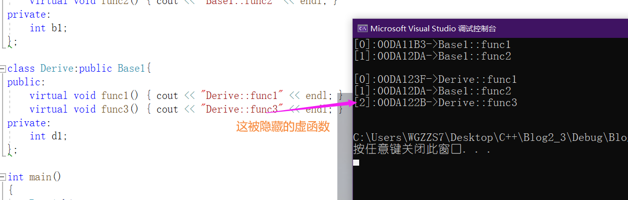 public:virtual void Func1(){cout << "Derive::Func1()" << endl;}