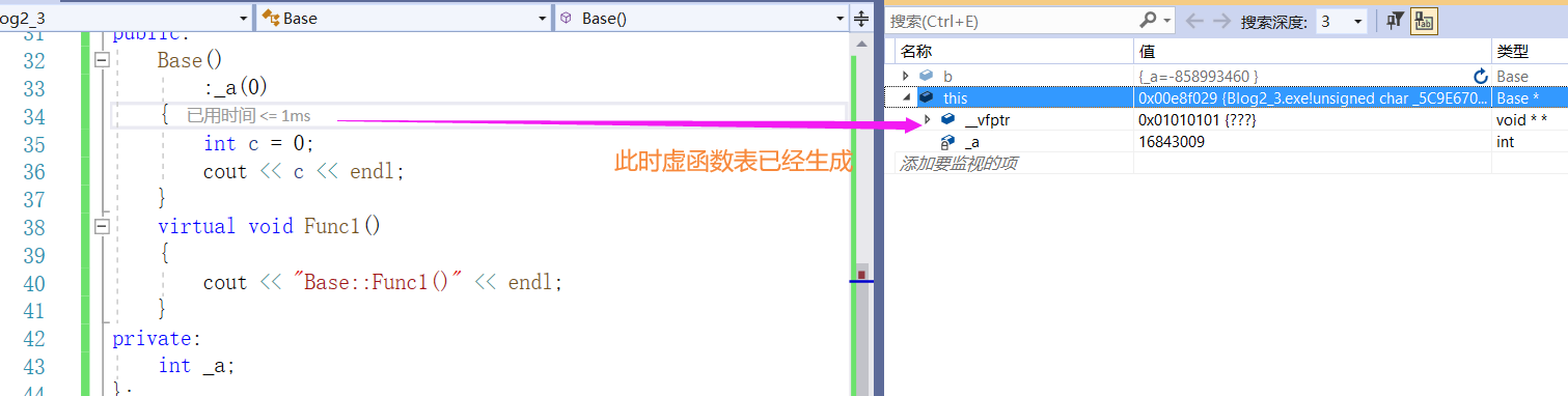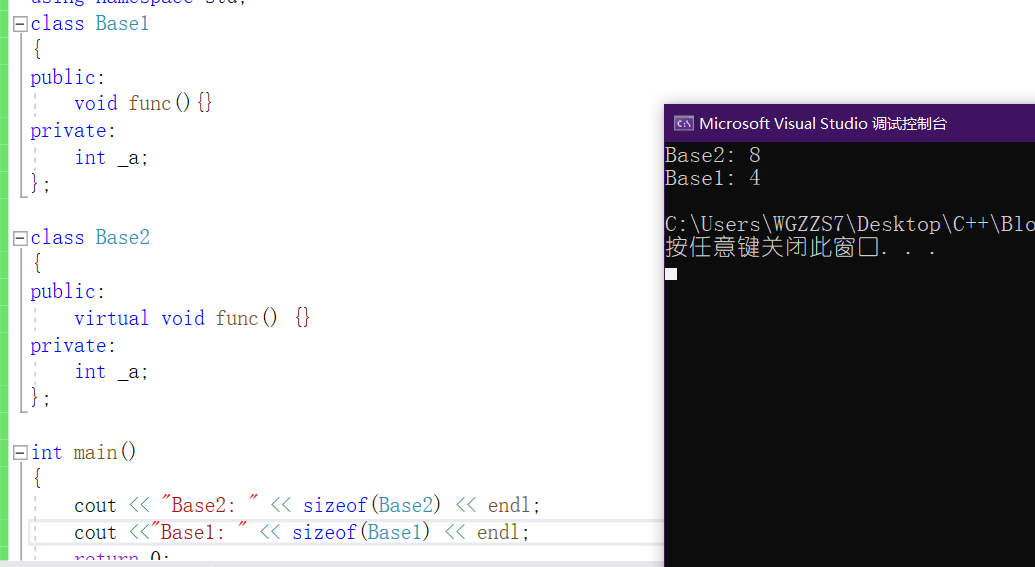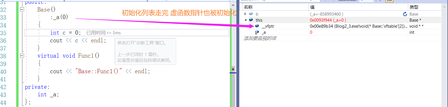 前篇说了这里的原因在于,一旦有虚函数,类里面就会自动生成一个虚函数指针。那么什么是虚函数指针呢?