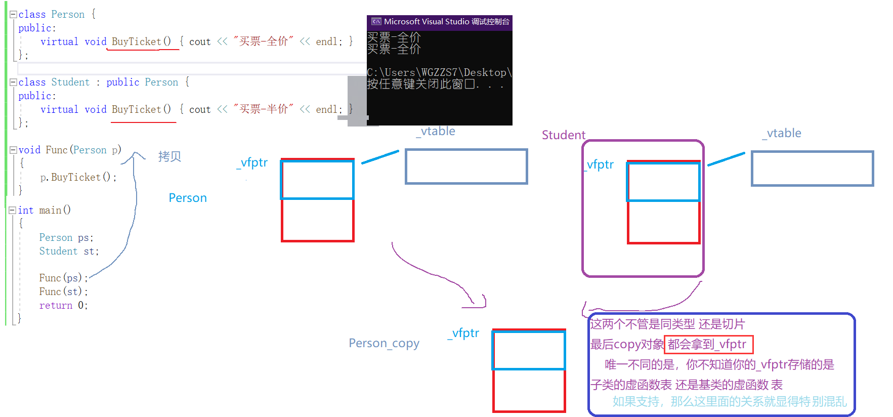 这也是为什么,多态的条件是基类的指针或者引用,而非对象。