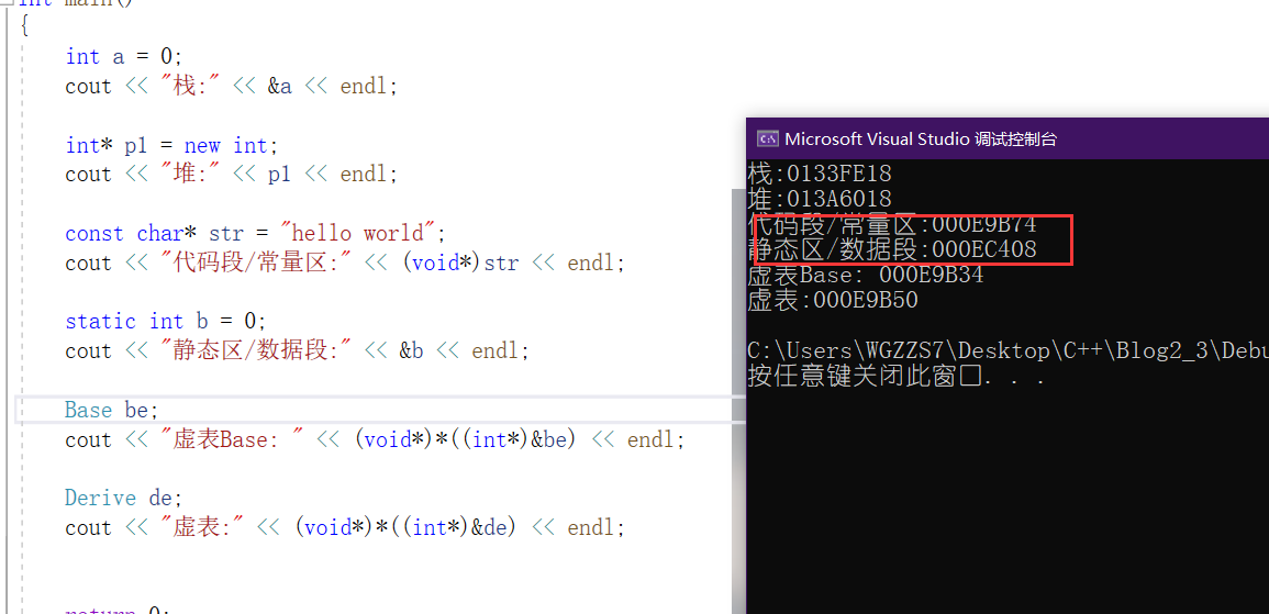 但是对于动态的多态,如:虚函数重写,虽然虚函数表在代码段\静态区,但是你不知道调用子类的虚函数还是父类的虚函数。因为起决定的是,父类指针、引用接收的对象,由此当父类指针、引用接收到对象时,会根据该对象去虚函数表中找到适合的虚函数,再进行调用,从而实现动态的多态。