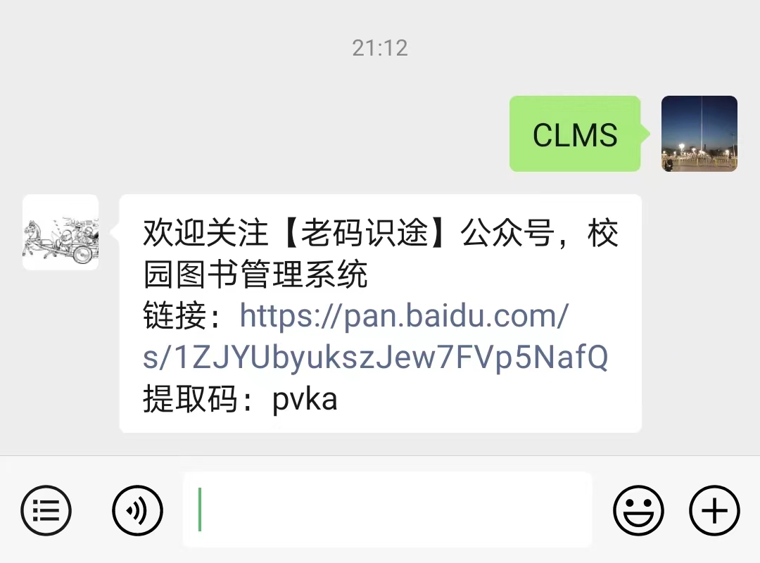 关注个人公众号,并回复关键词CLMS,即可获取源码,如下所示: