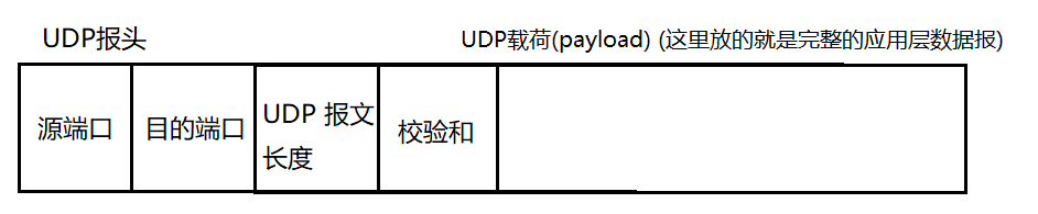 对于 UDP 来说,报头一共就是 8 个字节,分成 4 个部分(每个部分 2 个字节)