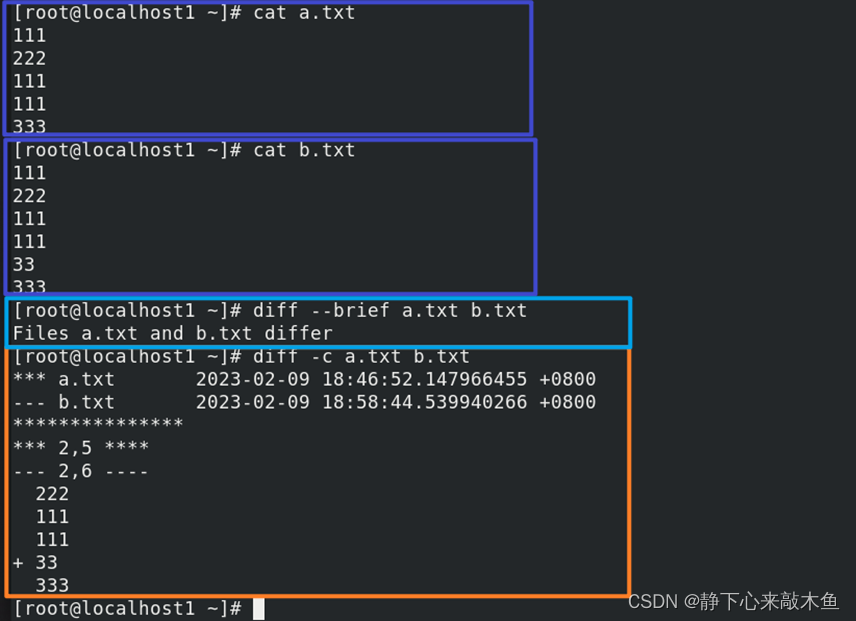 diff --brief 文件1 文件2 比较文件a和b是否相同
