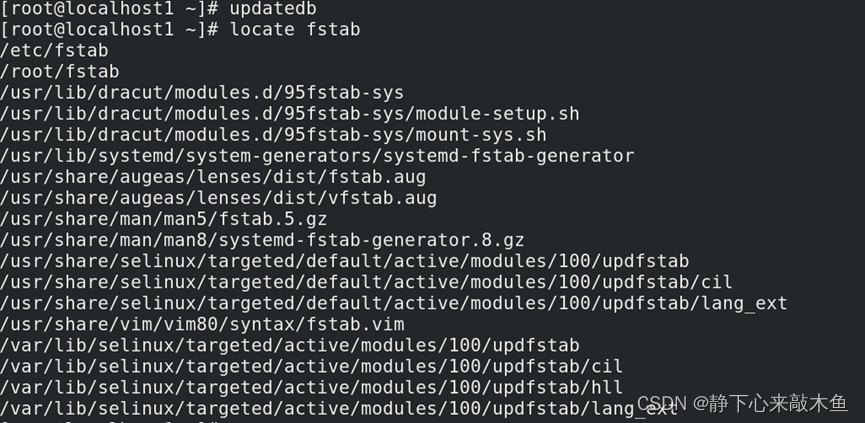find搜索是需要严格匹配fstab,locate搜索是只要有关键词fstab就匹配