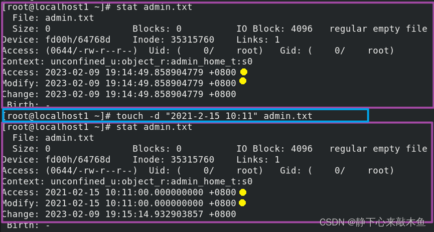 touch -m "2021-2-15 10:11" 文件名 修改文件名的修改时间