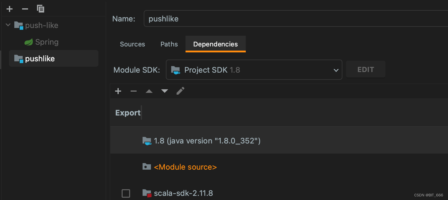 上述方法尝试后均无法解决异常报错,再次检查 Project Structure 发现 Modules 出现了类似同名的项目,后者项目无 Scala 依赖,看着像是同名不同类的项目混杂了,'➖' 删除掉下面无依赖的项目,项目也恢复正常,不再报错 Cannot resolve symbol XXX。