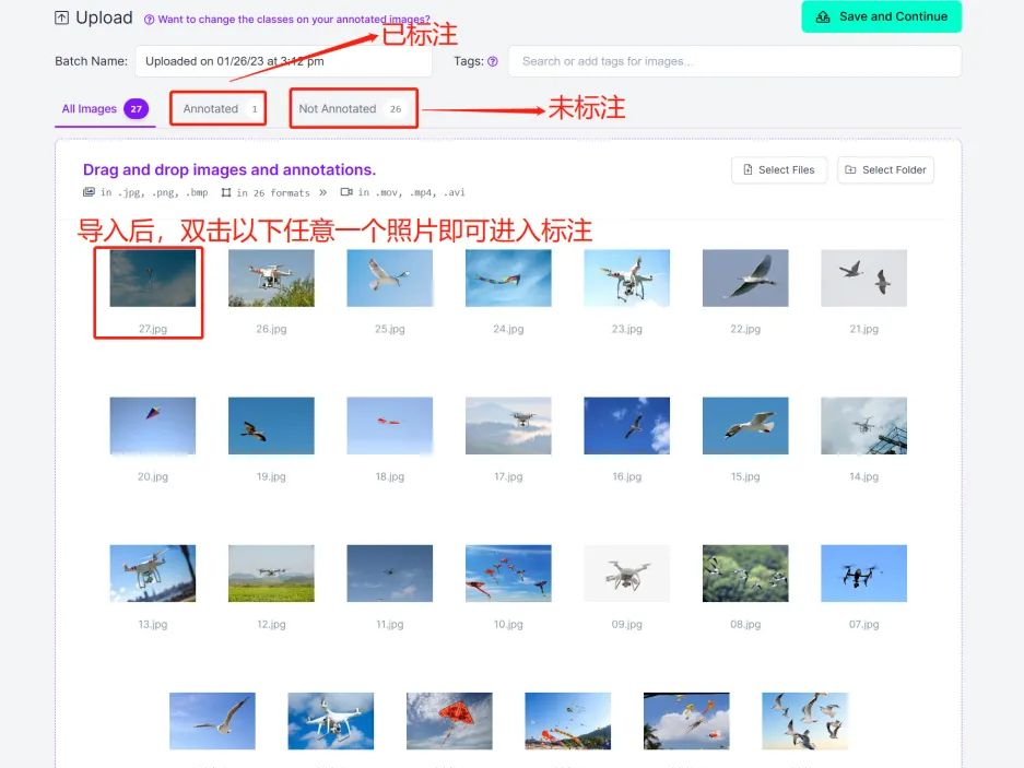 导入目标文件夹后,双击任何一张图片即可进入标注,这里我们以第一张图片为例,操作步骤如图所示: