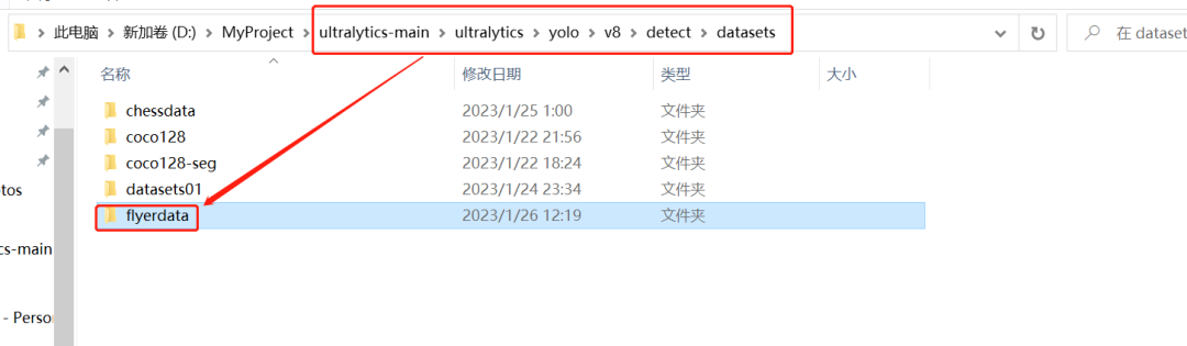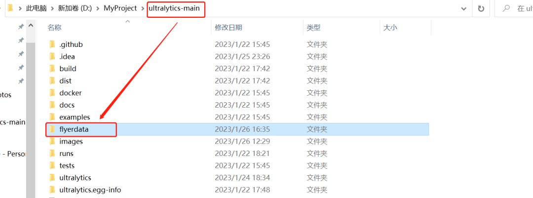 将得到的数据集压缩包解压到仓库的主路径中,为了方便后续调用CLI命令更便捷,这里我们将数据集重命名为“flyerdata”。