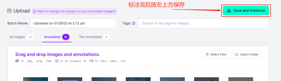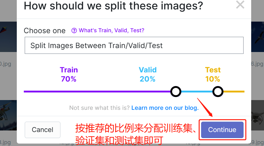 图片标注完成,返回后点击右上方进行保存。选择“Split Images Between Train/Vaild/Test”,根据系统推荐自动划分训练集、验证集和测试集,最后导出文件压缩包至电脑。
