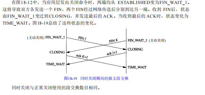 两个应用程序同时执行主动打开。这需要每一方使用对方熟知的端口作为本地端口。整个同时打开连接的过程需要交换4个报文段。同时每一端既是客户又是服务端。