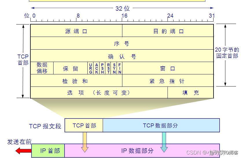 16、选项:长度可变,最长可达 40 字节,当没有使用选项时,TCP首部长度是 20 字节