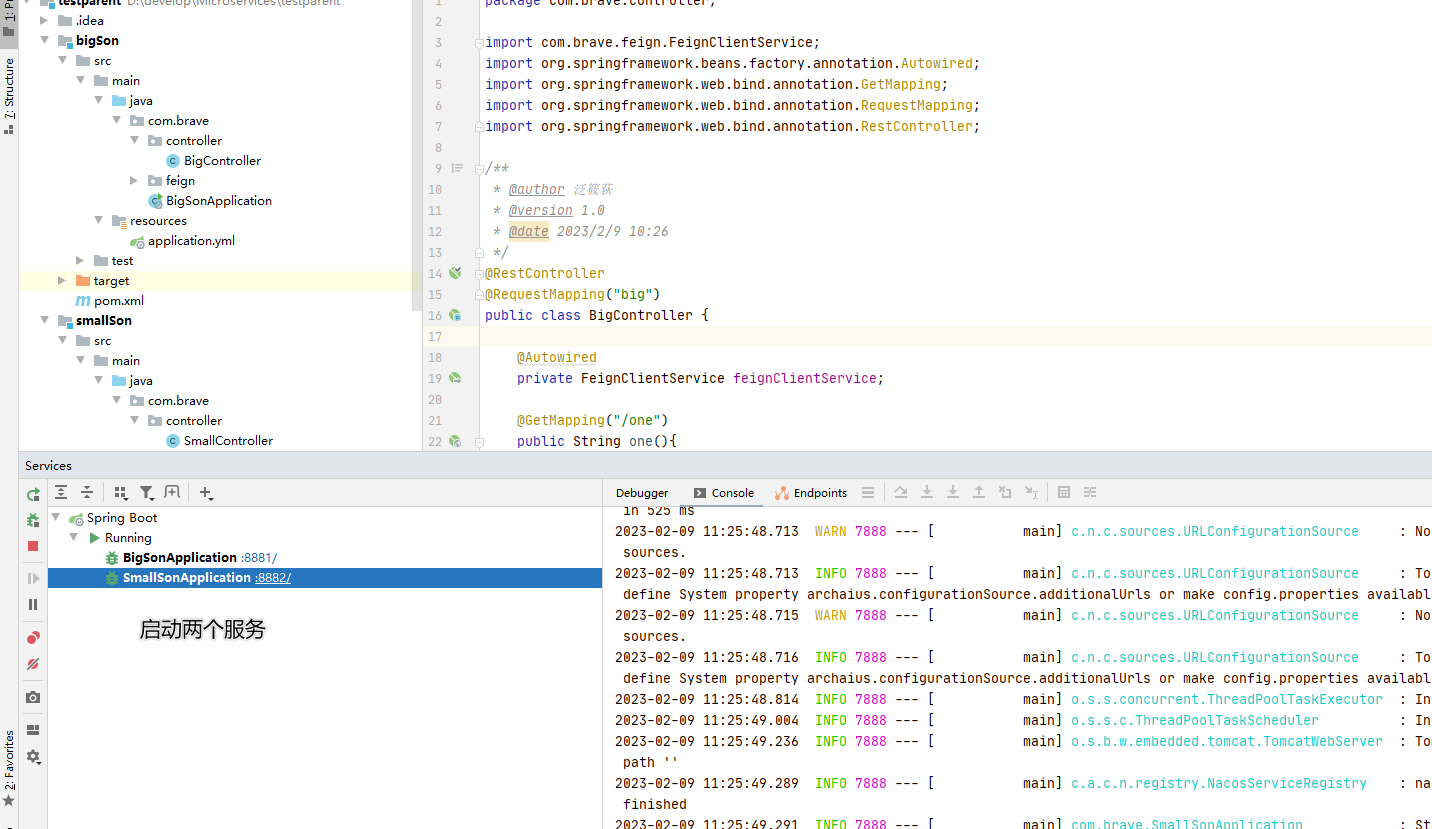 7、启动两个服务,访问大儿子的路径,如果返回小儿子,就代表大儿子访问小儿子成功了