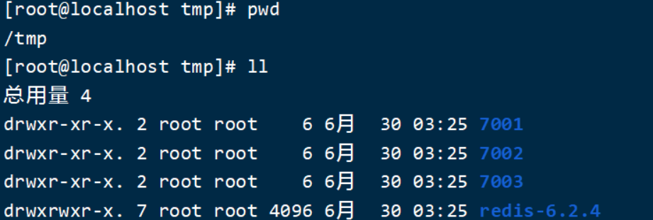 修改每个文件夹内的配置文件,将端口分别修改为7001、7002、7003,将rdb文件保存位置都修改为自己所在目录(在/tmp目录执行下列命令):