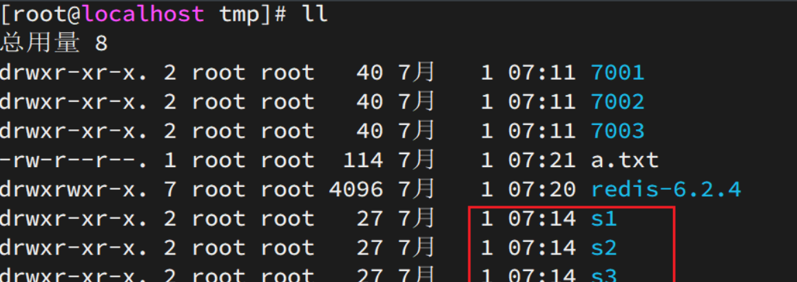 mkdir 7001 7002 7003如图: