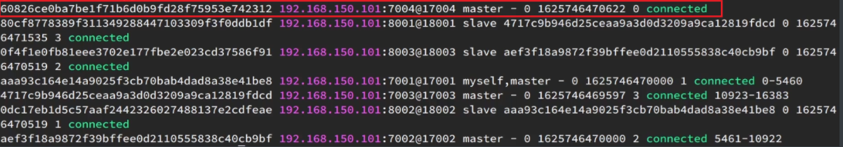 如图,7004加入了集群,并且默认是一个master节点: