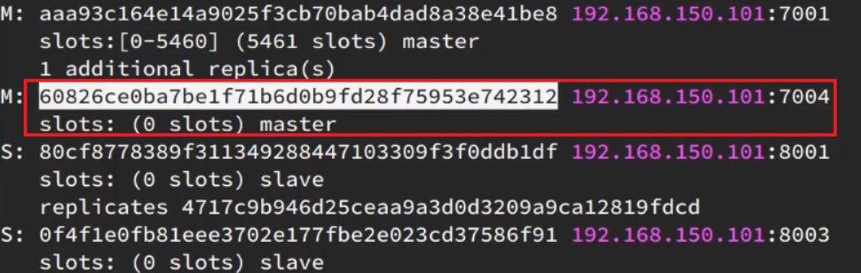 redis-cli --cluster add-node 192.168.136.130:7004 192.168.136.130:7001