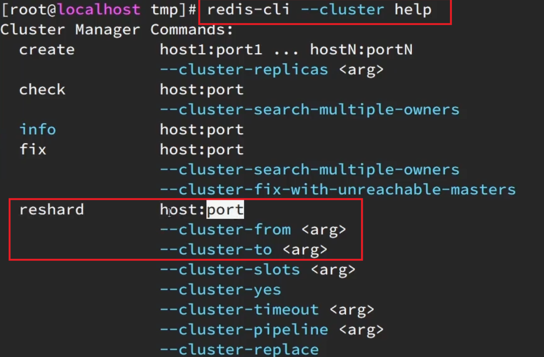 redis-cli --cluster提供了很多操作集群的命令,可以通过下面方式查看: