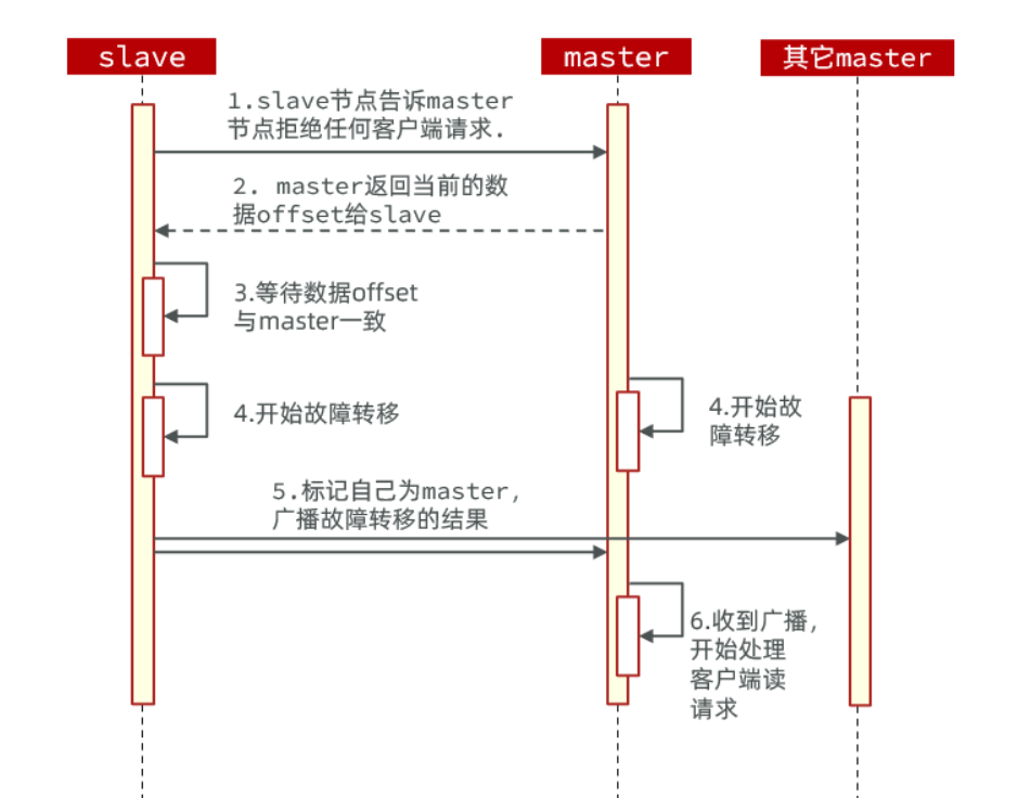 takeover(接管):直接执行第5歩,忽略数据一致性、忽略master状态和其它master的意见