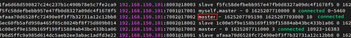其中7001、7002、7003都是master,我们计划让7002宕机。
