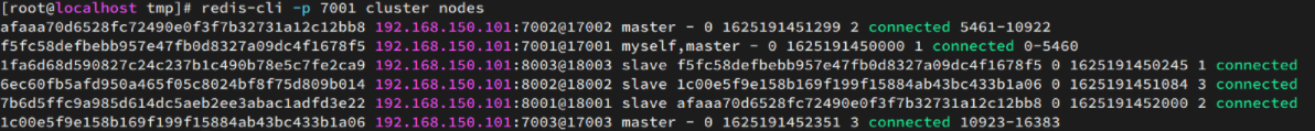 redis-cli -p7001 cluster nodes