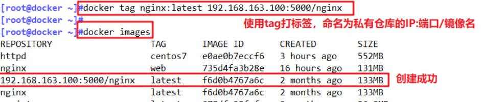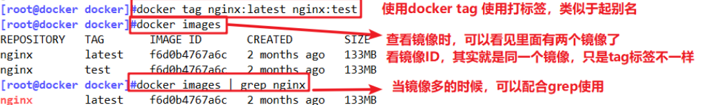 docker tag 仓库名:原镜像名 仓库名:新镜像名