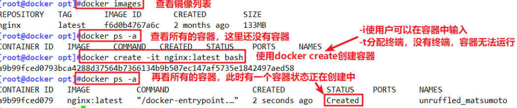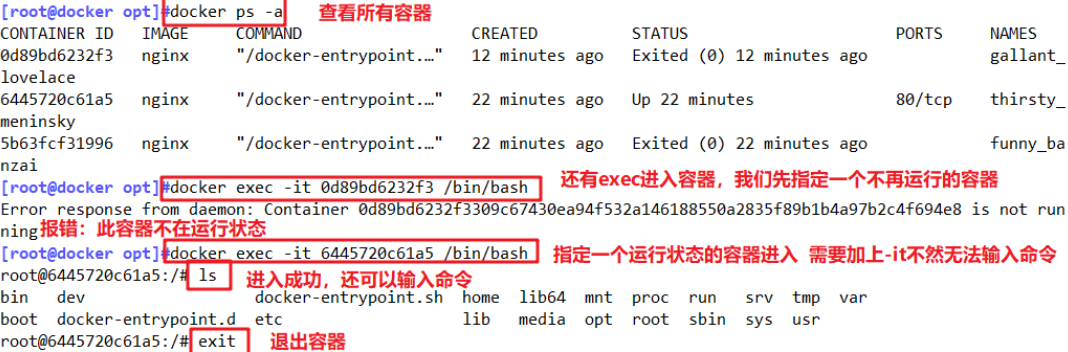 docker ps -a #加-a 列出所有的容器,包括未运行的容器