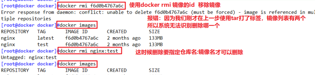 指定镜像ID删除的时候,要求不能有该镜像不能有标签