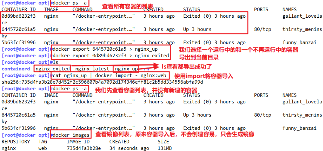 docker export 容器ID > 备份文件名#容器导入(会生成镜像,而不会创建容器)