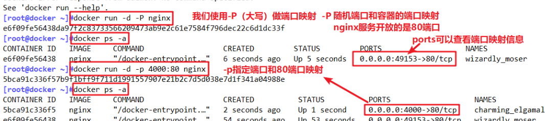 -P: 随机端口映射,容器内部端口随机映射到主机的端口