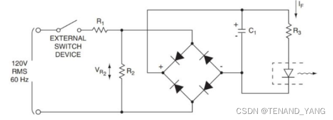 图 1:使用光耦合器进行交流电源监控的电路图交流输入在向光耦合器的IRED发出信号之前经过整流和滤波。