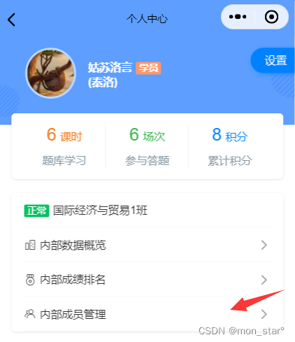 4、创建单位后,可以看见有单位名称、状态、内部数据概览、内部成绩排名、内部成员管理等显示;