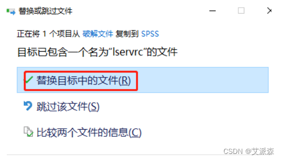 ②打开SPSS的安装目录,将复制的文件粘贴。选择“替换目标中的文件”。