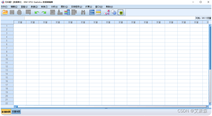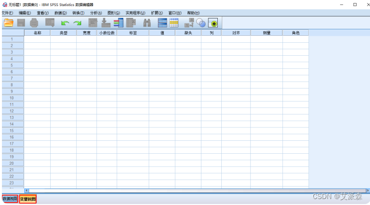 数据编辑器窗口有两个选项卡,一个是【数据视图】,另外一个是 【变量视图】。