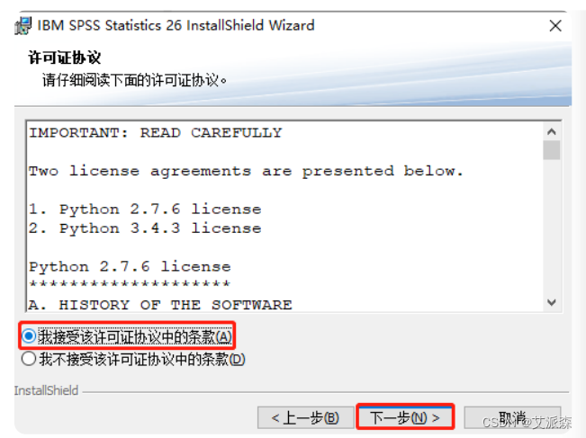 ②直接点击上图中的【下一步】。勾选我接受许可协议点击【下一 步】。