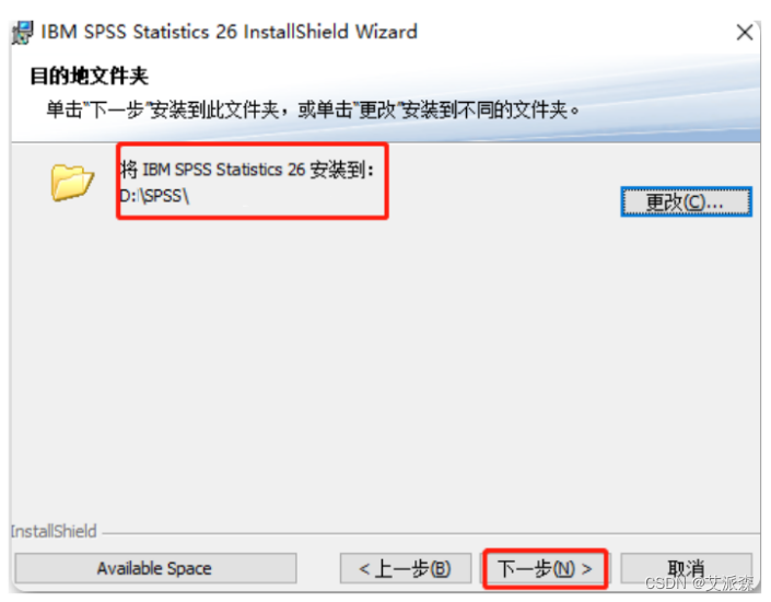 ⑤修改安装路径,点击【下一步】,如我的安装路径是“D:\SPSS\”。