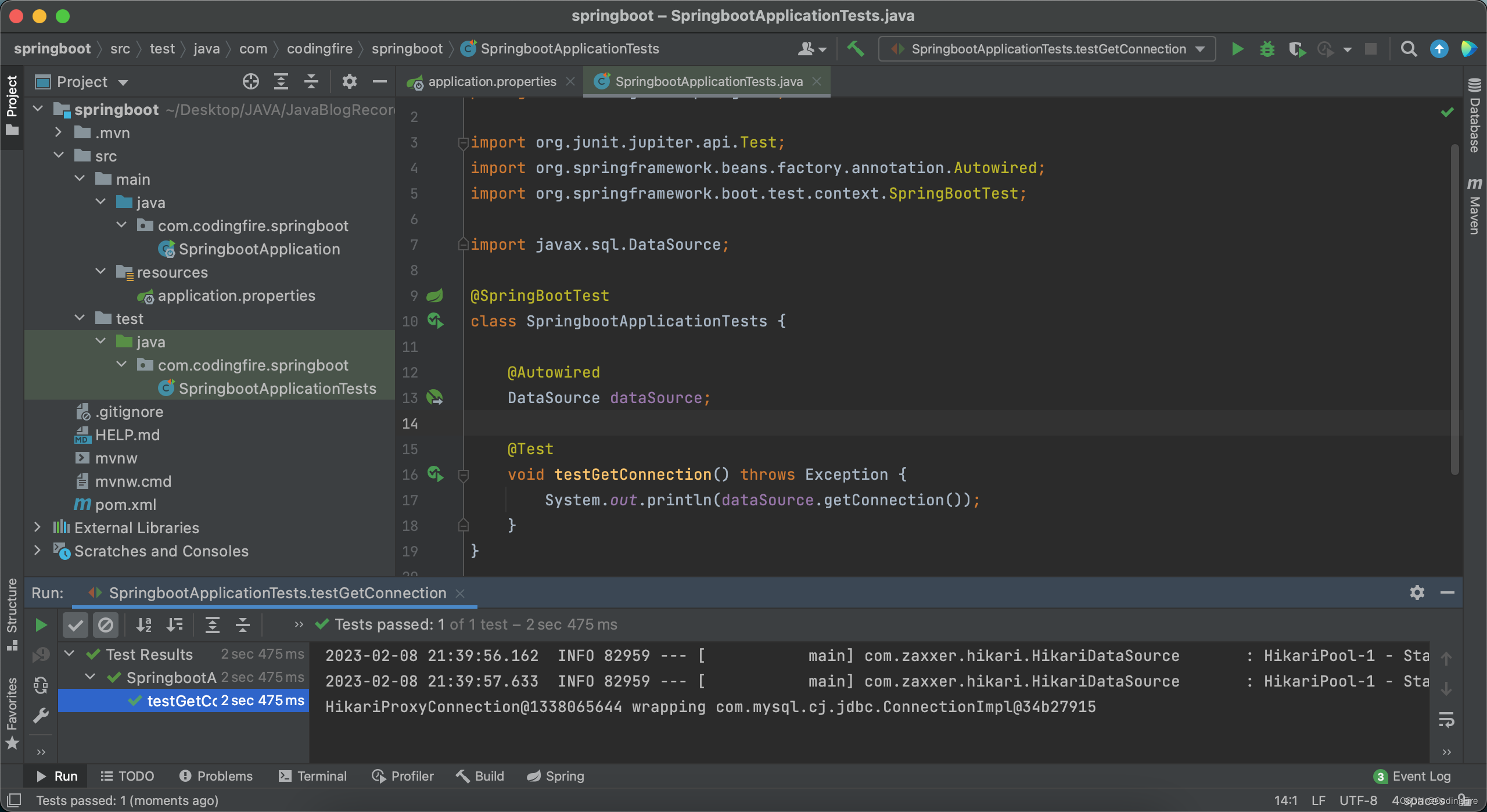class SpringbootApplicationTests {@AutowiredDataSource dataSource;@Testvoid testGetConnection() throws Exception {System.out.println(dataSource.getConnection());}