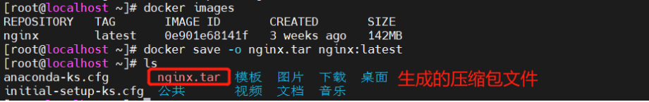 docker save -o 镜像文件.tar 镜像名称:标签 #生成镜像文件