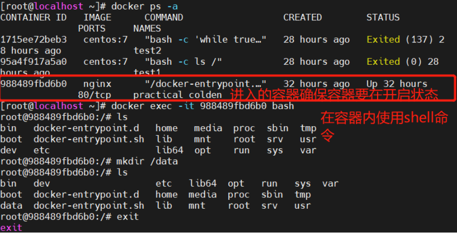 docker exec -it <容器ID/名称> bash|sh #进入容器