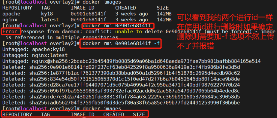 docker rmi [镜像ID/镜像名称:标签] -f #删除镜像