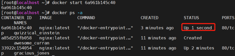 docker create -i [--name=容器名称]镜像名 #创建容器