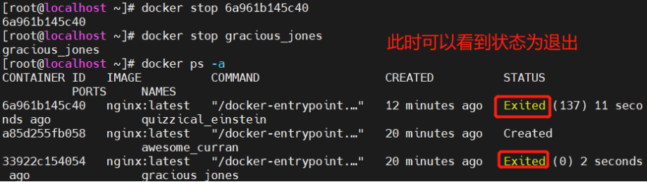 #查看容器运行状态从第二行开始查看第一个字段并将结果传参给docker rm 删除