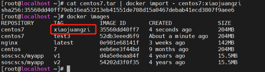 cat centos7.tar | docker import - centos7:test#导入后会生成镜像,但不会创建容器