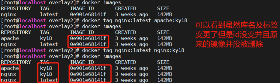 docker tag 库名:标签 新库名/新标签 #修改库名及标签