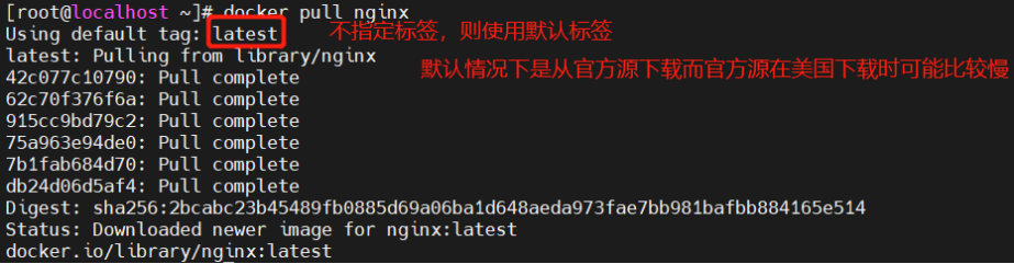#如果下载镜像时不指定标签,则默认会下载仓库中最新版本的镜像,即选择标签为latest标签。