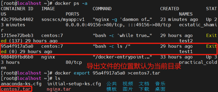 docker export 容器ID/名称 > 导出文件 #容器的导出