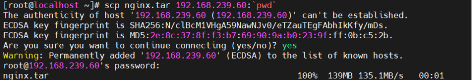 #另外一台主机安装好docker使用scp传输到另外一台主机