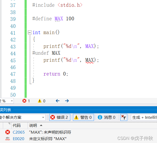 我们发现,移除宏定义MAX之后,再次使用就报错了。
