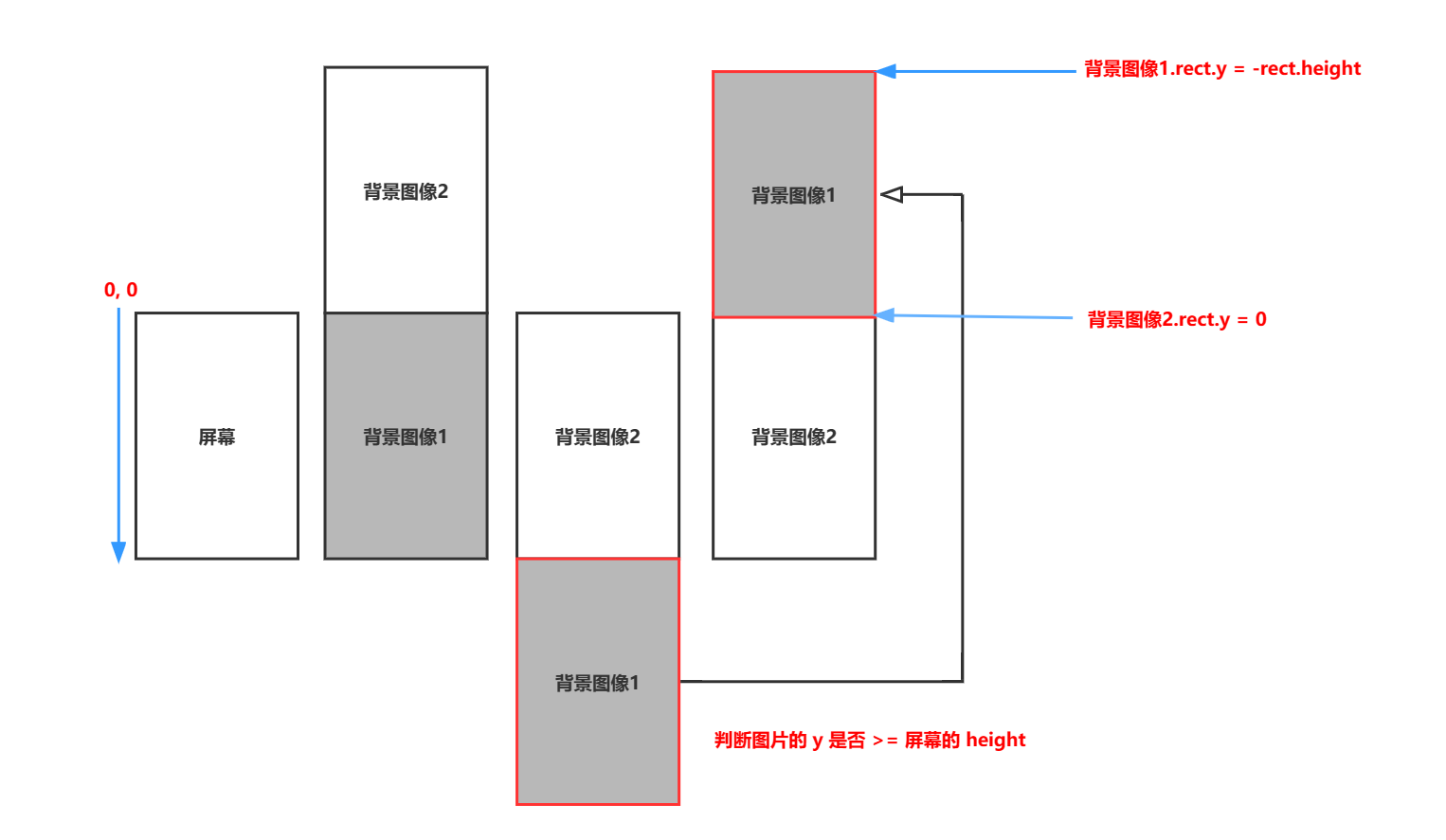 当任意背景精灵的rect.y >=屏幕的高度 说明已经移动到屏幕下方