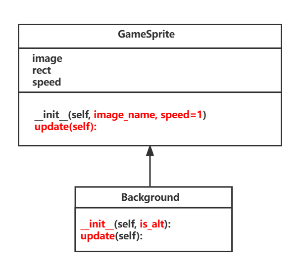 def __create_sprites(self):#创建背景精灵和精灵组bg1 = Background("./images/background.png")bg2 = Background("./images/background.png")bg2.rect.y = -bg2.rect.heightself.back_group = pygame.sprite.Group(bg1, bg2)__update_sprites方法