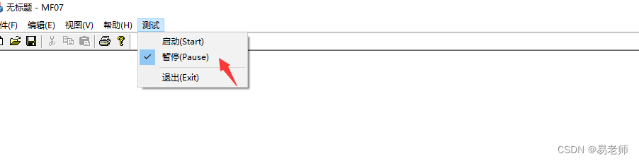 {// TODO: 在此添加命令处理程序代码static bool flag=true; //静态变量::AfxMessageBox("退出"); CMenu *menu=::AfxGetMainWnd()->GetMenu();if(menu){if(flag) menu->CheckMenuItem(ID_STOP,MF_BYCOMMAND|MF_CHECKED);else menu->CheckMenuItem(ID_STOP,MF_BYCOMMAND|MF_UNCHECKED);}flag=!flag;